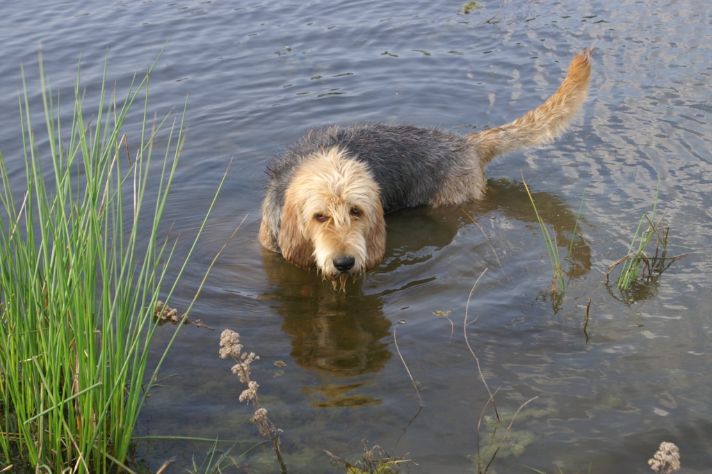 The Otterhound is quite simply built to be an expert swimmer. Its broad chest and strong shoulders enable it to swim for hours on end without tiring. And its dense waterproof coat, webbed feet, heightened sense of smell, and swimming confidence once made them the perfect breed for hunting otters. So good, in fact, that river otters in England nearly went extinct.