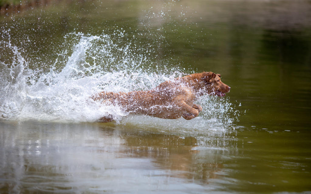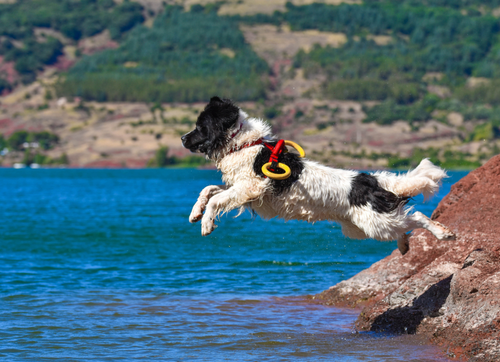 Most dogs love to splash around in water (unless it’s bath time). And in fact, many breeds are built for swimming. Dogs originally bred to be used for various water activities are typically the best swimmers. Their developed physical characteristics, like webbed feet, water repellent coats, long legs, and rudder-like tails provide them with the necessary tools for swimming.