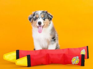 Firehose is another very sturdy material that has gained popularity in the dog toy industry. Firehose is multilayered and built to withstand serious wear and tear for its work in the fire service industry. That durability extends into its life as a great material for dog toys, such as our Firehose Blasters. It’s important to note though that while the material can take heavy chewing, the seams of any toy are prime spots for dogs to sink their teeth in and start to pull the toy apart.