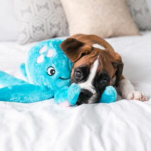 No matter how “chew-proof” a toy is labeled, no toy is truly indestructible forever. Lots of toys are “virtually indestructible” or “stand up to tough play,” but claiming complete indestructibility in the dog toy industry could require something like hiring a squad of the most eager, happy-to-chew puppies to do gnawing tests on all the toys over an extended period of time, with lots of breaks because puppies get distracted. But we think that the puppies of the world have better things to do AND we know that all it takes is one determined puppy to turn an “indestructible” toy into a shredded pile of cloth and stuffing. So no, indestructibility is not realistic.